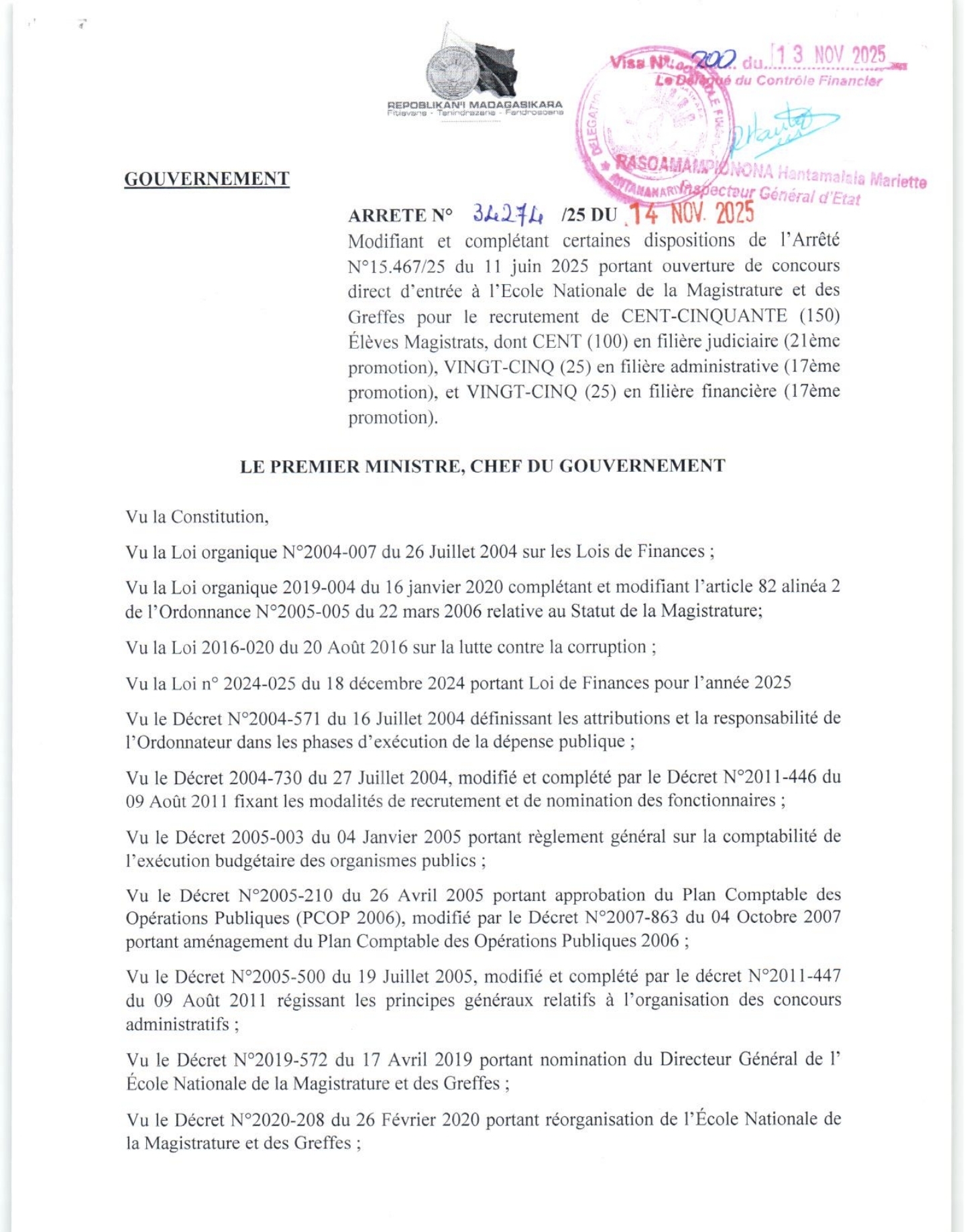 ACTUS CONCOURS MAGISTRATS à l'ENMG